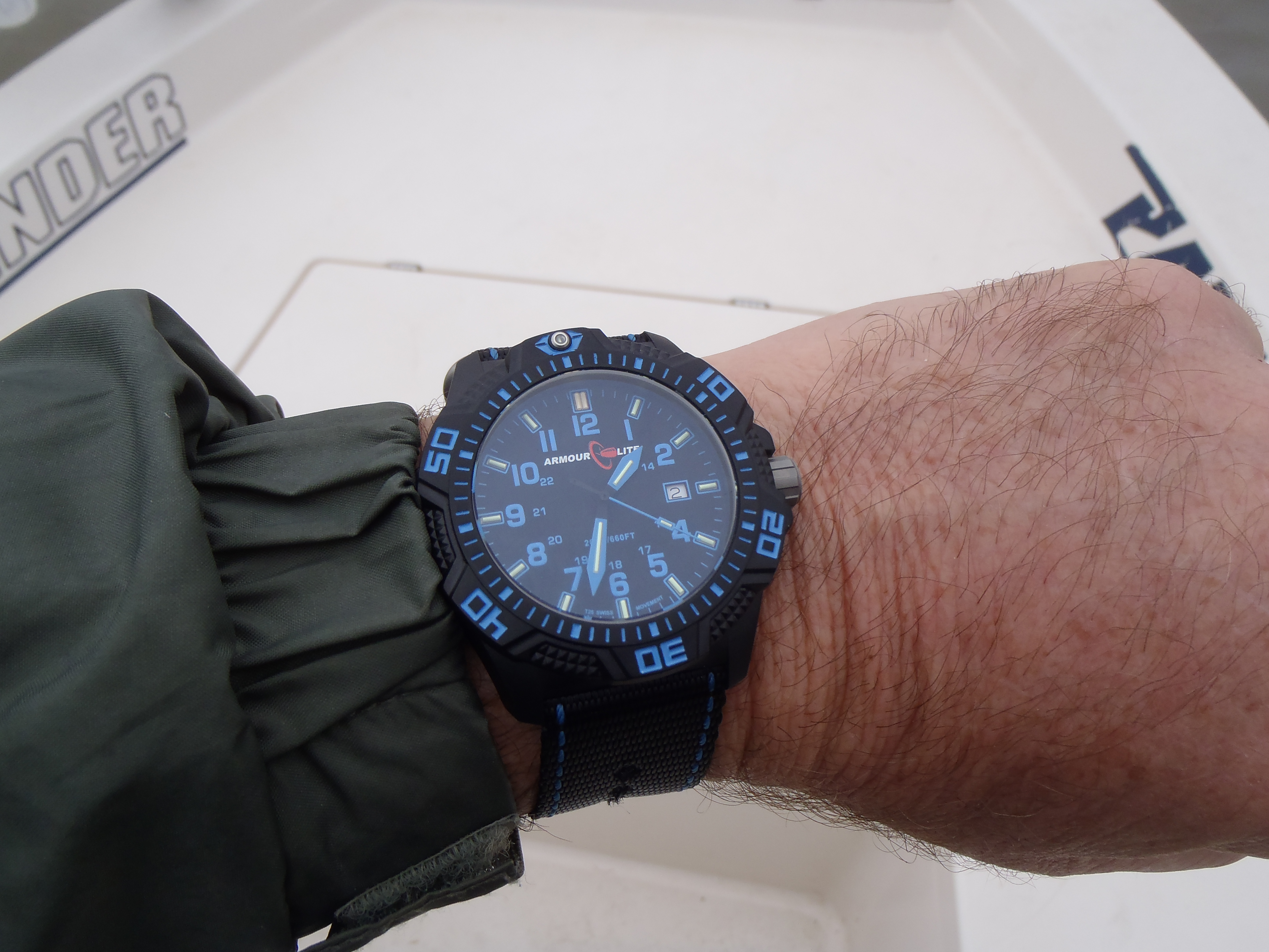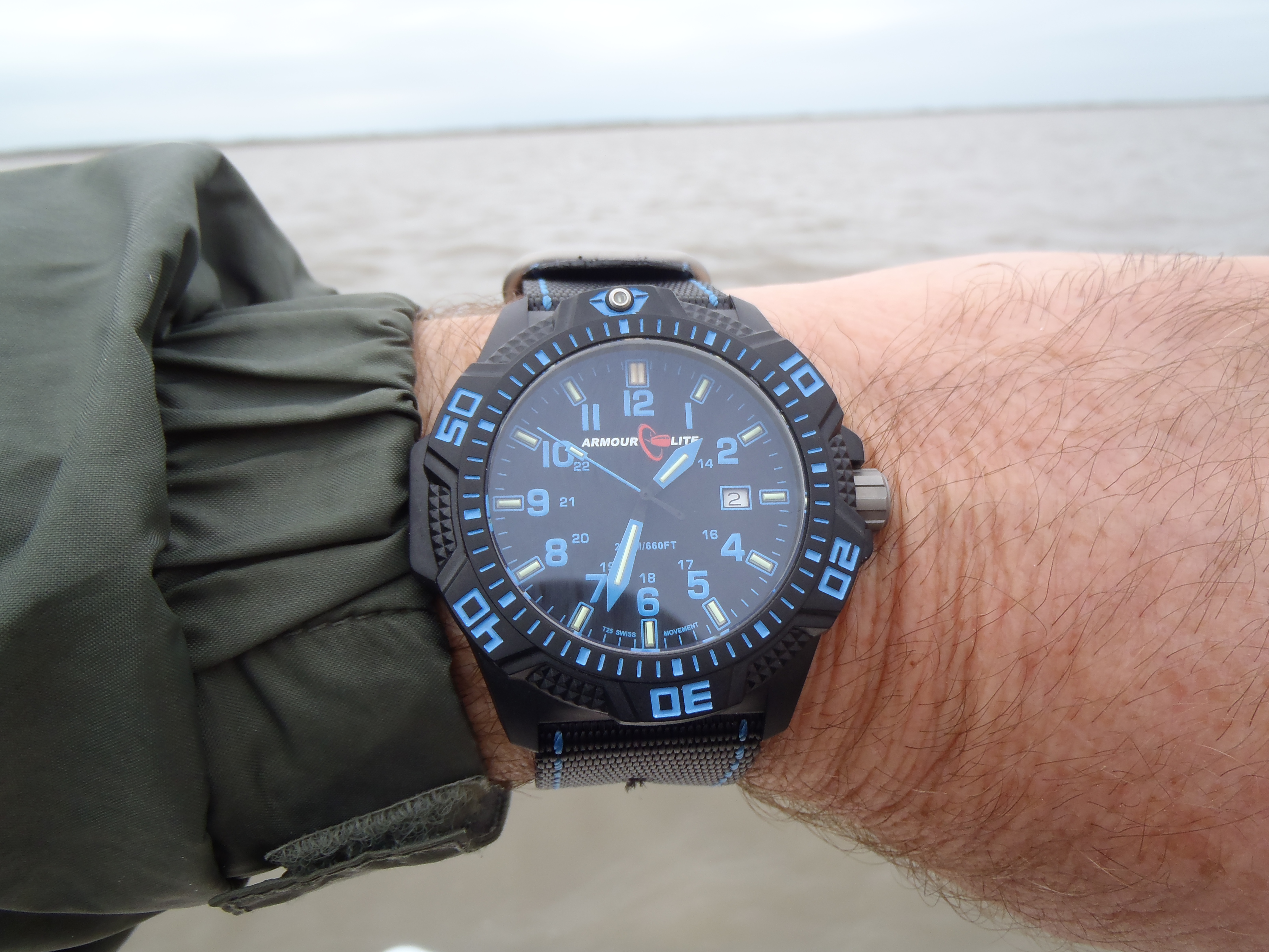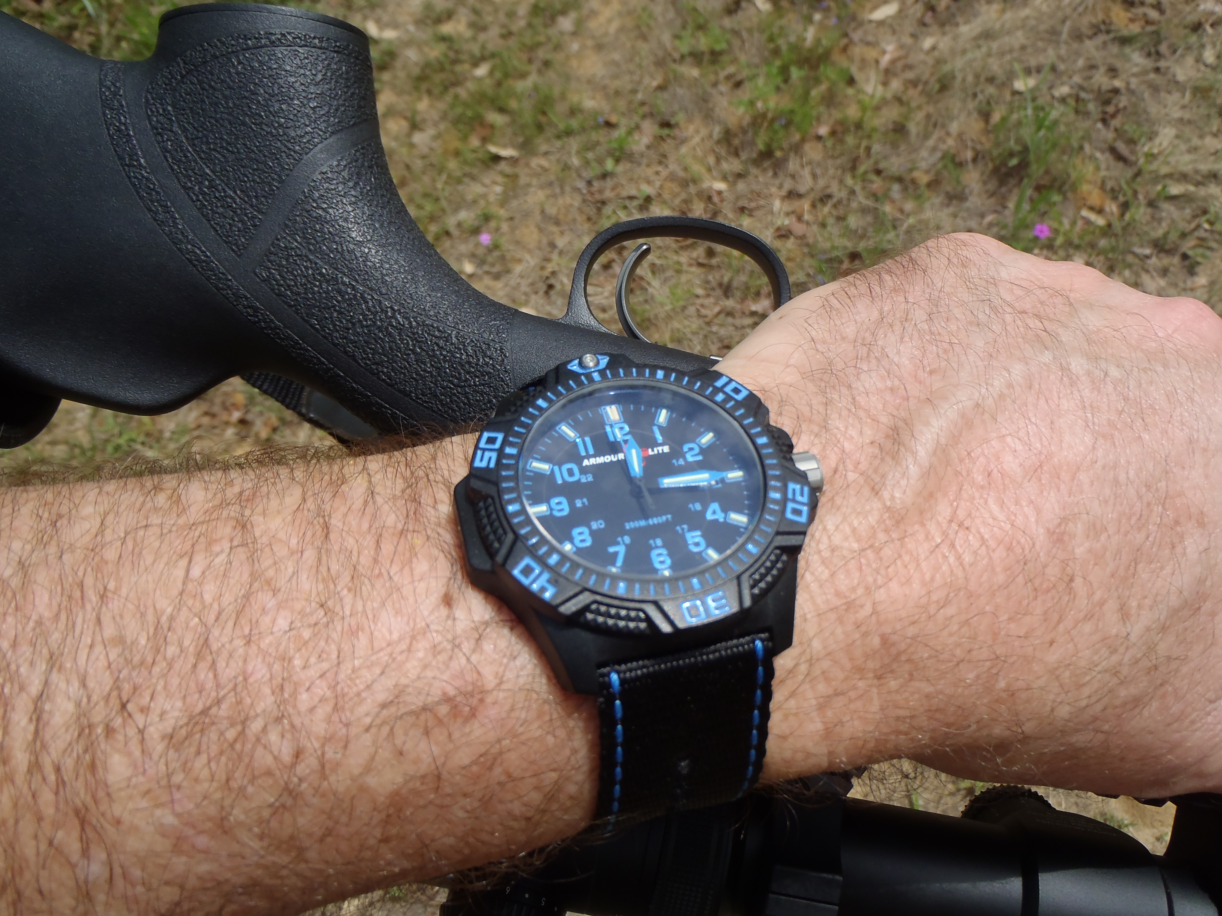 As I searched for a replacement for my original Lumonix Navy SEAL watch (which finally died after years of very hard use) I came across the new ArmourLite Caliber Series watches and was impressed by the design. The good folks at ArmourLite sent me the AL601 model for review. I have worn it in a variety of situations over the past several months – hunting, fishing, and working on the ranch – and it is a keeper. Specifications according to ArmourLite: