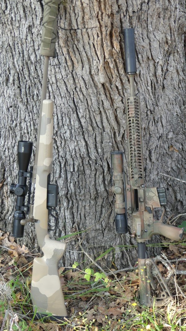 The rifle on the right is my 13 year old son’s custom 6.8 SPC!