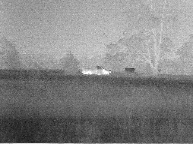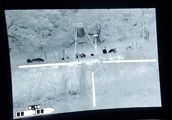 It’s a very simple to operate unit, not overly burdened with complex menu options. Sight in is very easy. I put out a cold water bottle at 50 yards laying down so that I am only seeing the bottom, about a 2″ target and bore sighted it. I removed the BCG on the rifle and centered the barrel on the bottle then moved the crosshairs with the thumbstick to the same target and then fired. I made a few adjustments, locked the reticle in place and went hunting. Now, as I mentioned earlier, an even easier way is with the thermal targets from DownRangeThermal. His targets are in use by military, LE and security forces at Nuclear power plants. Very cool stuff. But in a pinch, the water bottle trick works.