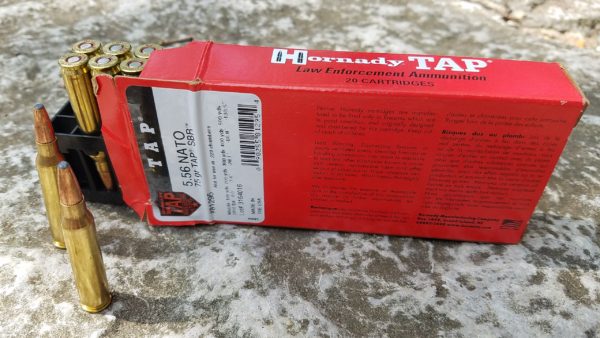 I shot this big boar at about 50 yards with 5.56 75g TAP, it was quartering towards me and I centered the reticle in the head and it took off running, almost right at me and I put another 5-8 rounds as it went by me at 10 ft and stopped about 20 behind me.
